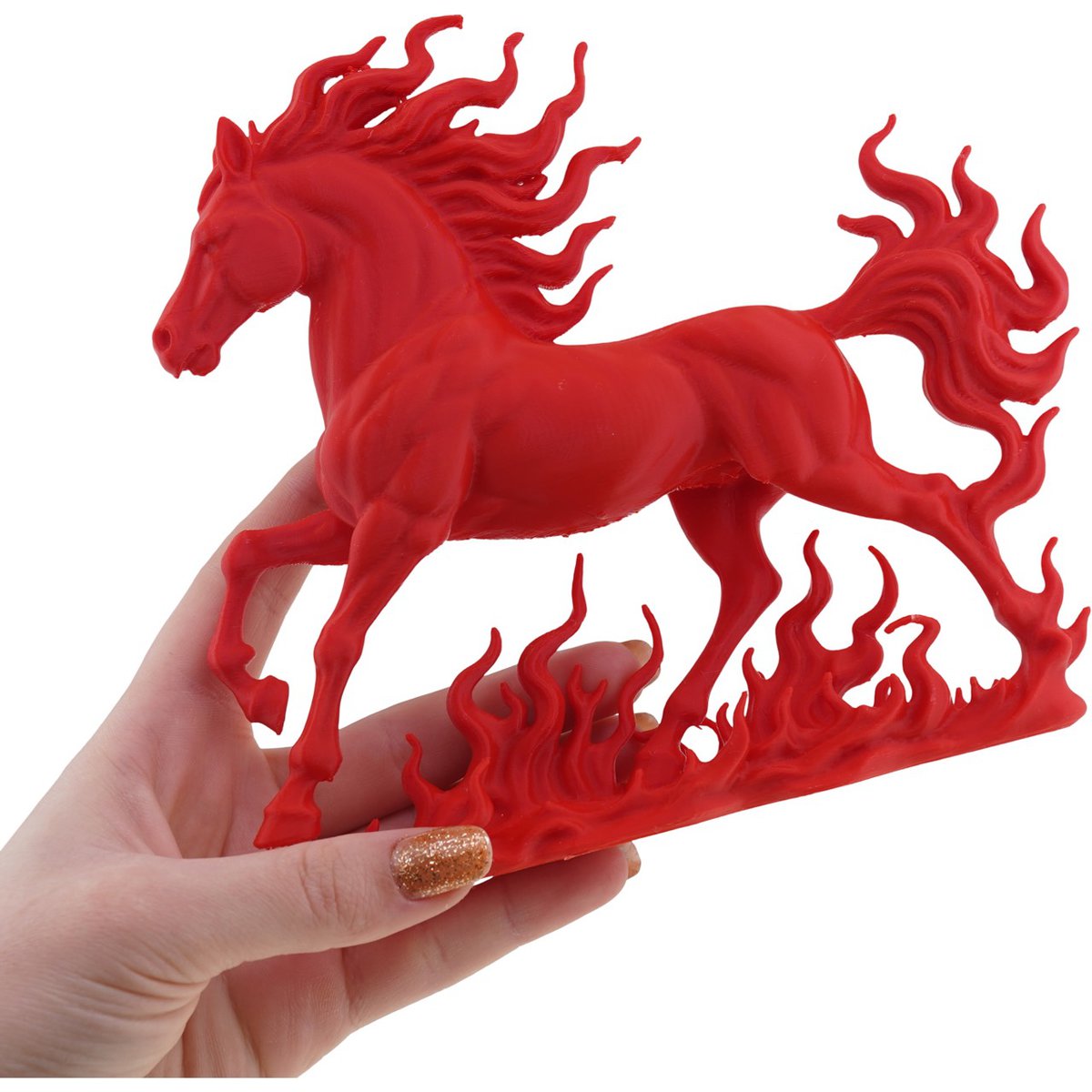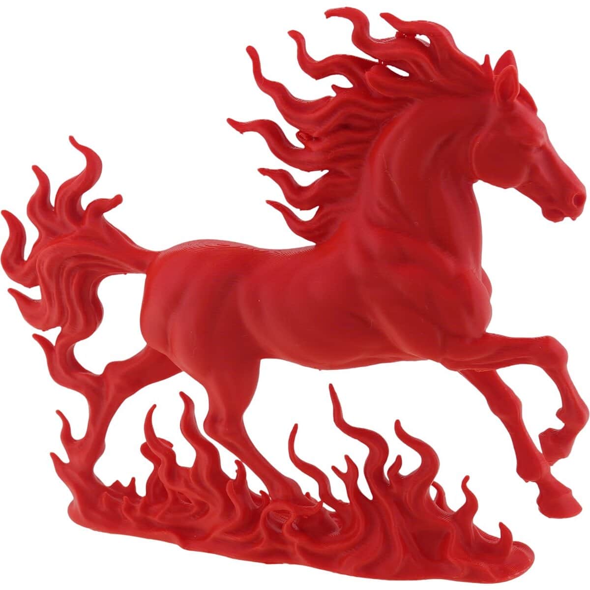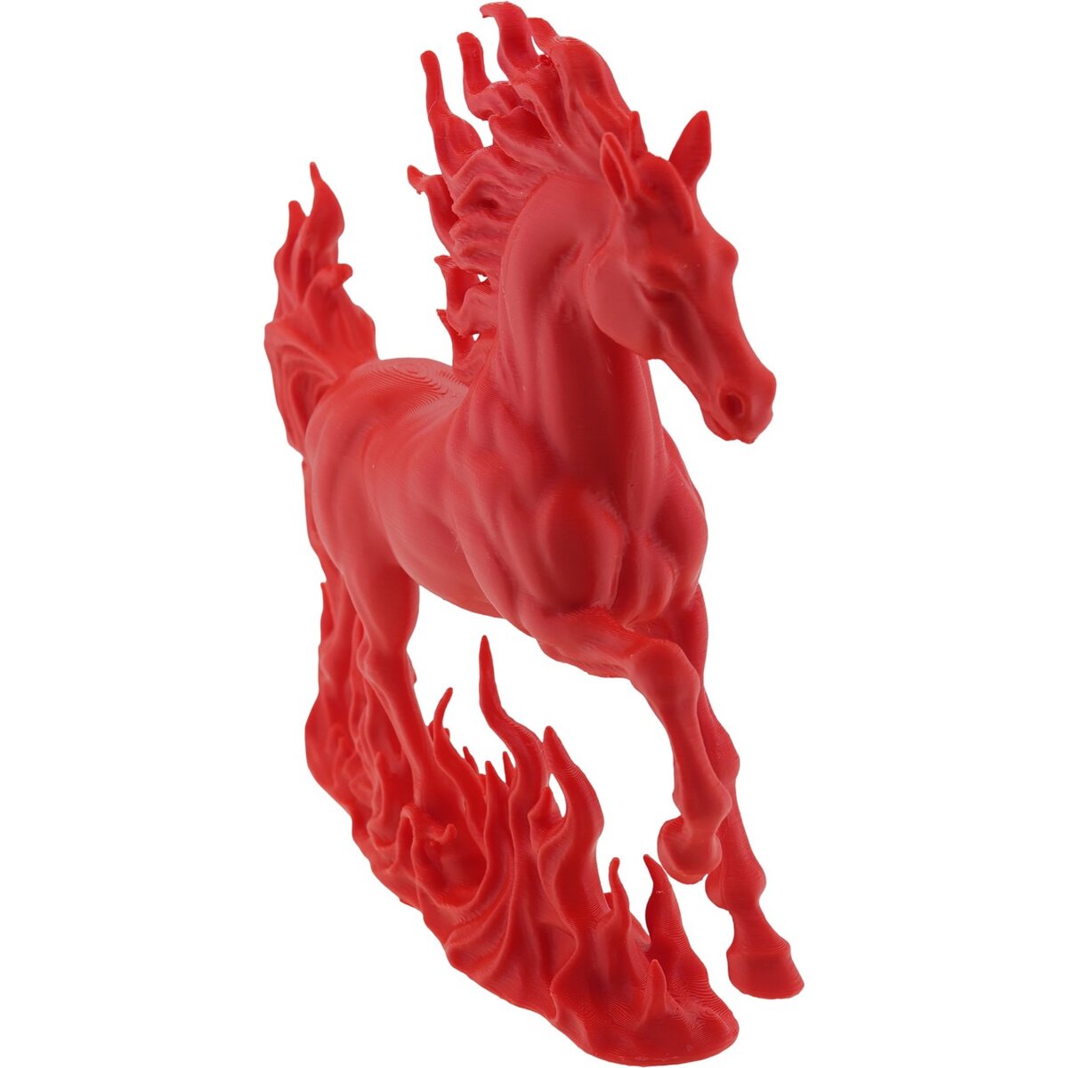 Statueta este realizată din PLA premium, un plastic rezistent, netoxic și considerat mai prietenos cu mediul, obținut prin printare 3D de precizie. Acest material îi oferă atât durabilitate, cât și detalii clare în reprezentarea calului și a flăcărilor, de la liniile corpului până la formele unduite ale focului. Suprafața plăcută la atingere și finisajul atent o fac ușor de integrat în decorul casei sau al biroului.