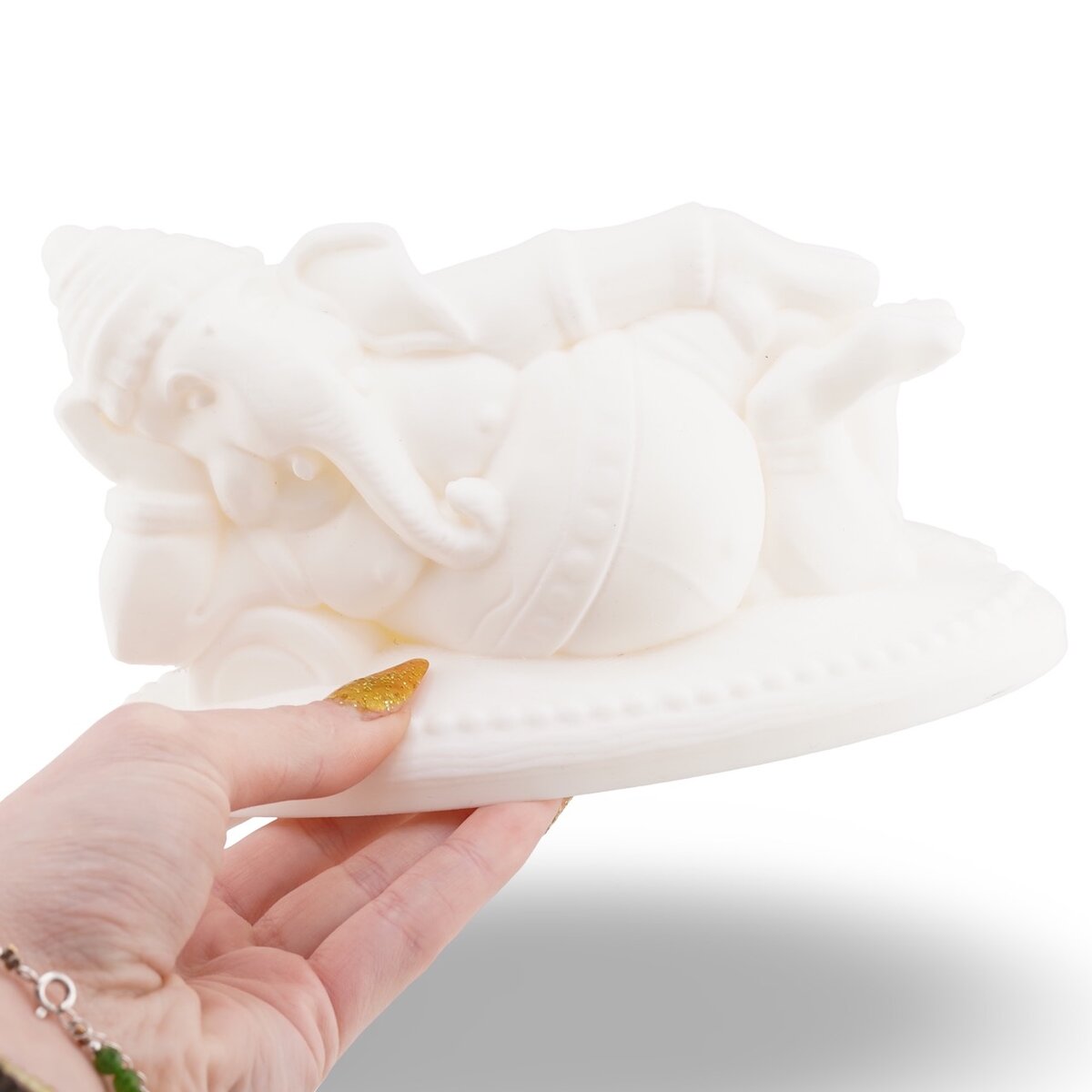 Statueta feng shui Ganesha relaxat, simbol al păcii interioare și al depășirii obstacolelor fără efort