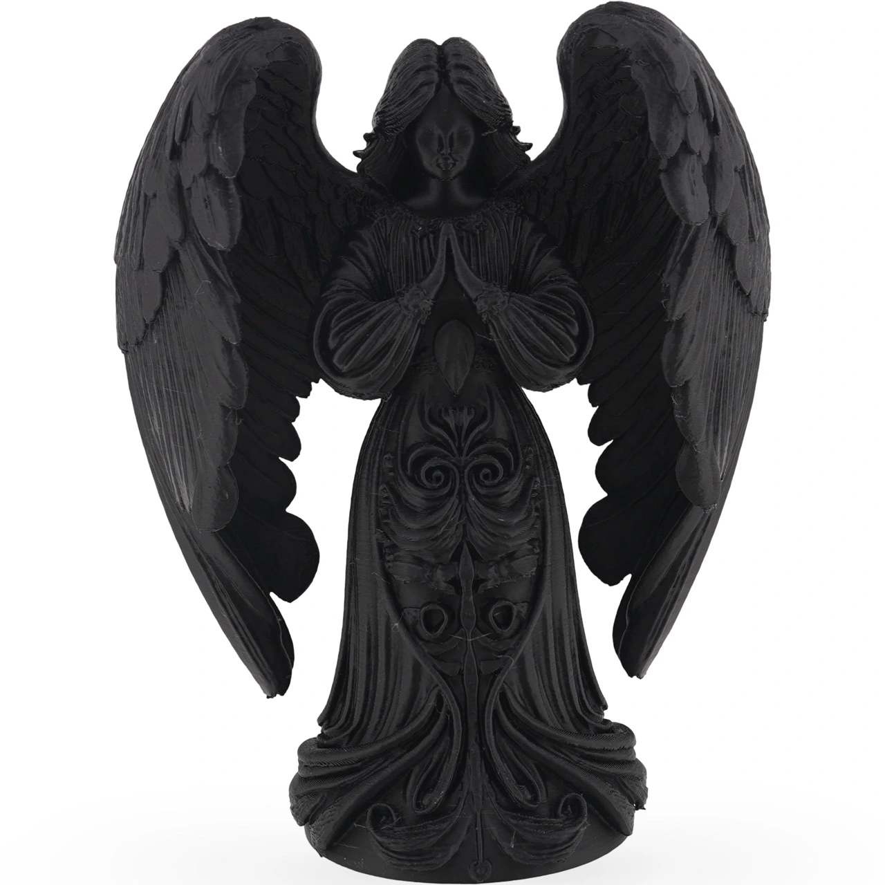 Statueta Inger protectiv gravat, 14,5cm - negru este gândită pentru momentele în care ai nevoie de mai multă liniște în spațiul tău. Silueta delicată a îngerului, redată în nuanță de negru intens, aduce un contrast plăcut pe birou, pe noptieră sau pe un raft special, unde vrei să creezi un colț de reflecție și calm.