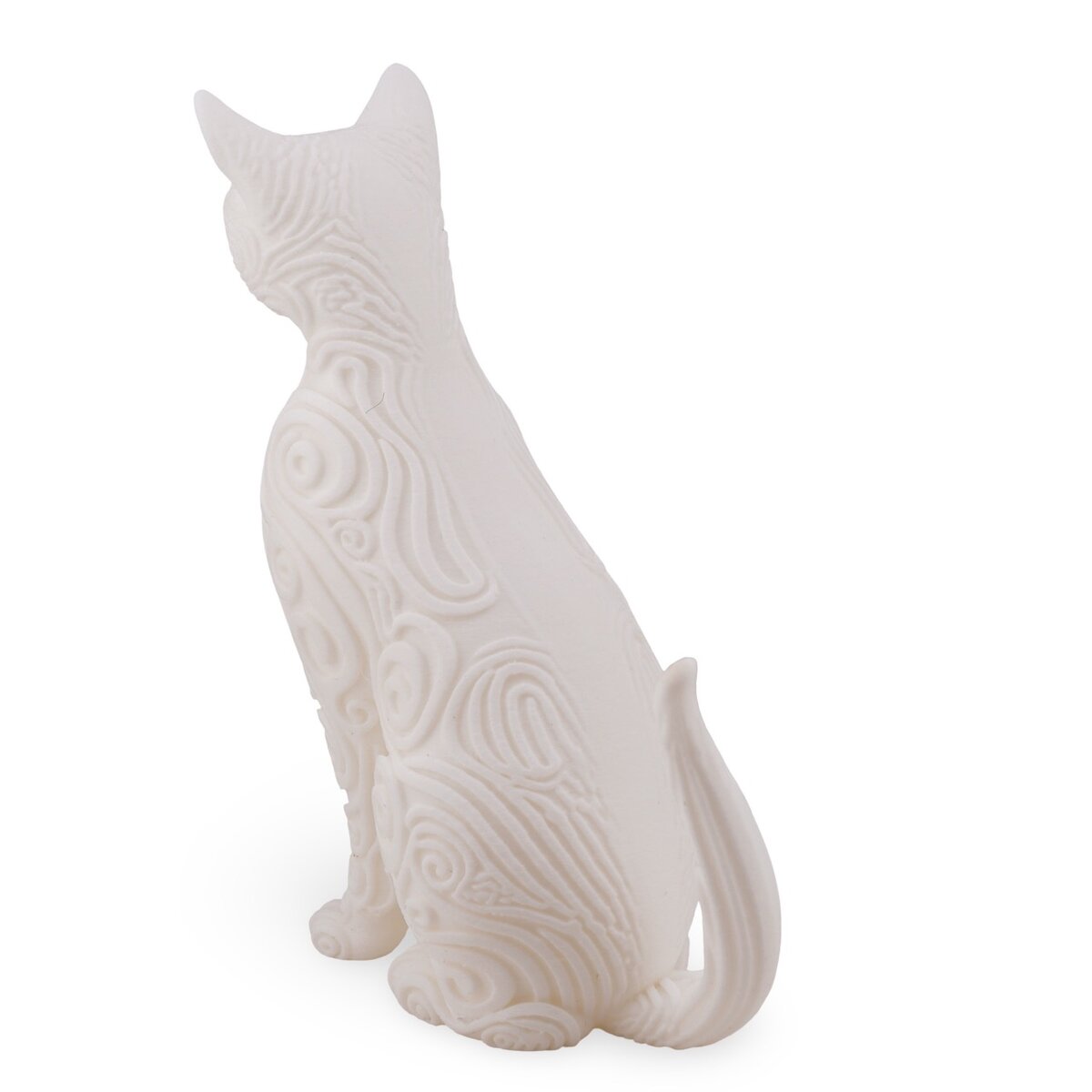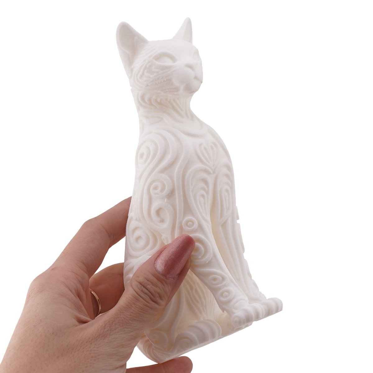 Realizata din PLA premium, un plastic rezistent, netoxic si considerat mai prietenos cu mediul, statueta este obtinuta prin printare 3D de precizie, ceea ce ii ofera contururi clare si un aspect modern. Suprafata fina, cu detalii gravate, pune in valoare silueta felina si lasa impresia unui obiect bine finisat, usor de integrat atat intr-un decor minimalist, cat si intr-un spatiu plin de culoare.