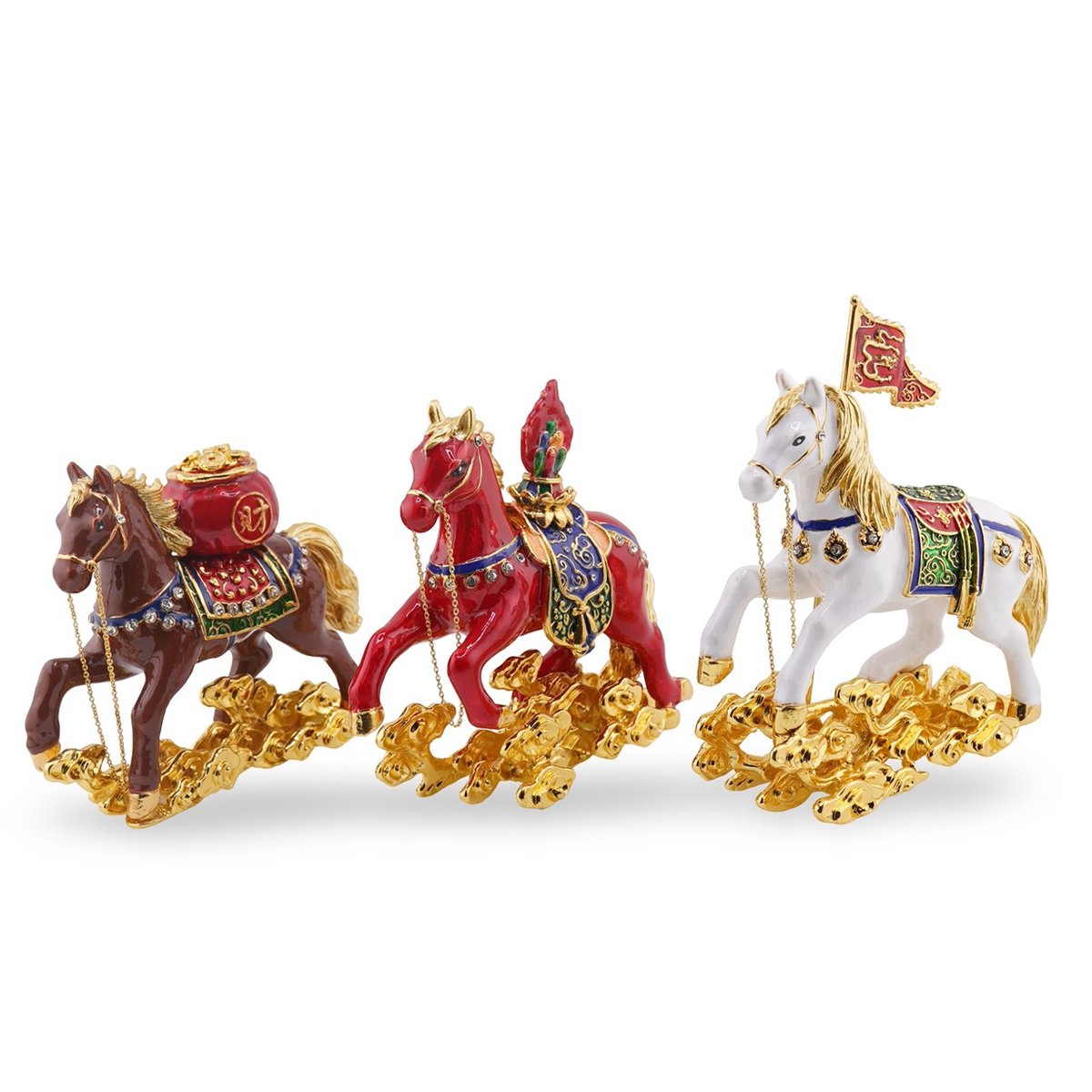 Statueta Premium Feng Shui din metal Trinitatea Cailor, 2026
