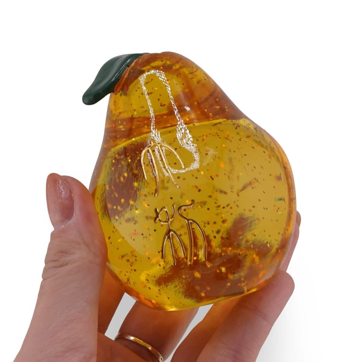 În centrul piesei se află mărul cu inscripția „Her Ping”, care înseamnă pace și susține relații armonioase. Alături, mandarina poartă mesajul tradițional al norocului și al reușitei, în timp ce rodia face trimitere la belșug și la oportunități noi. Împreună, aceste simboluri creează un sprijin vizual pentru intențiile tale, inspirând un flux blând de energie bună zi de zi.