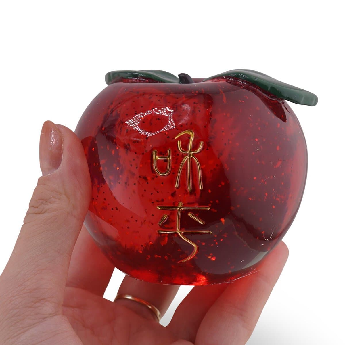 - Acest elegant accesoriu prezintă un trio de fructe de bun augur, fiecare gravat cu o binecuvântare puternică pentru a atrage pacea, prosperitatea și abundența. Mărul, gravat cu „Her Ping” (Pace), promovează armonia și relațiile armonioase. Mandarina cu „T