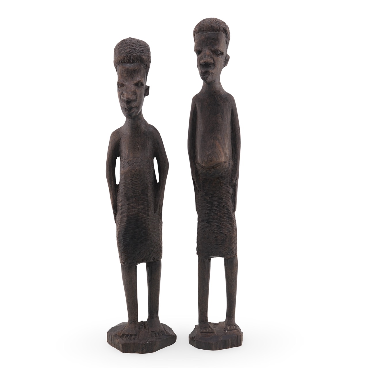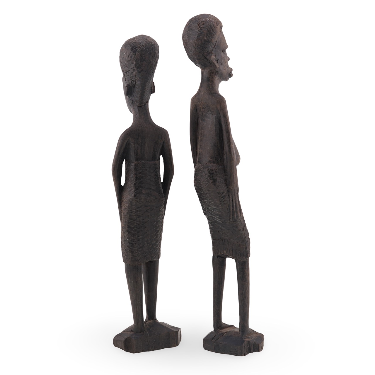 Statuete vintage din lemn, cuplu tribal, 21-22cm