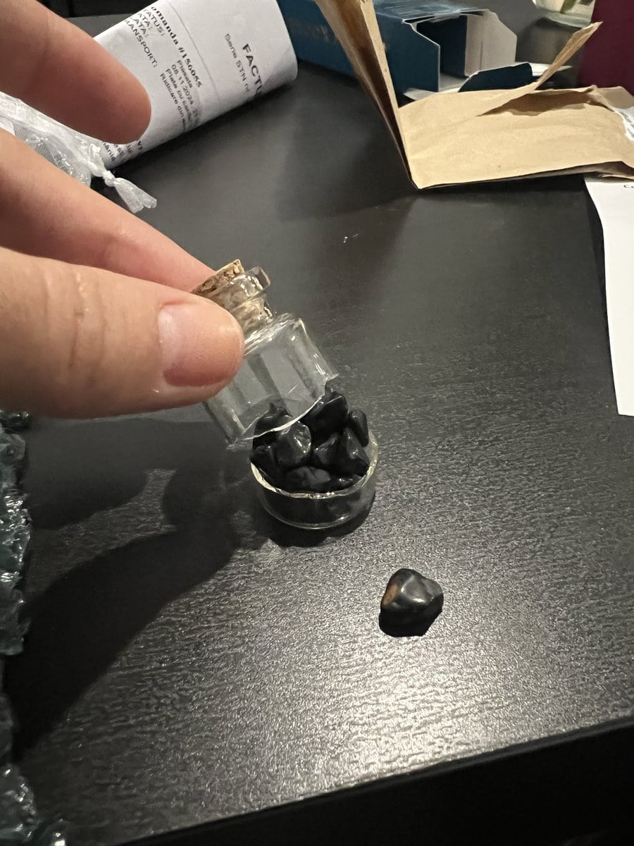 O sticluță fină din sticlă, de aproximativ 3 cm, umplută cu chipsuri de Turmalină Neagră naturale (3–6 mm) – o alegere practică pentru cei care caută protecție energetică, stabilitate și un plus de energie în spațiul personal sau la birou. Cunoscută și ca „piatra protecției”, Turmalina Neagră (Tourmaline), un borosilicat complex, este apreciată în practici de mindfulness și feng shui pentru ancorare, claritate și echilibru.