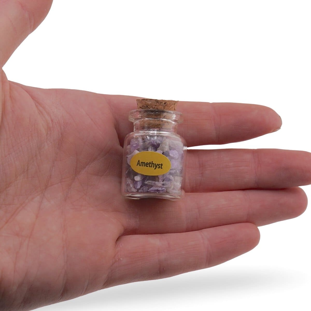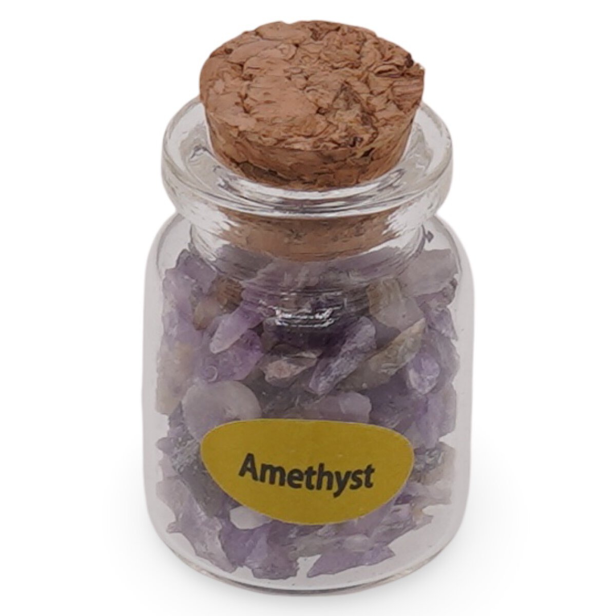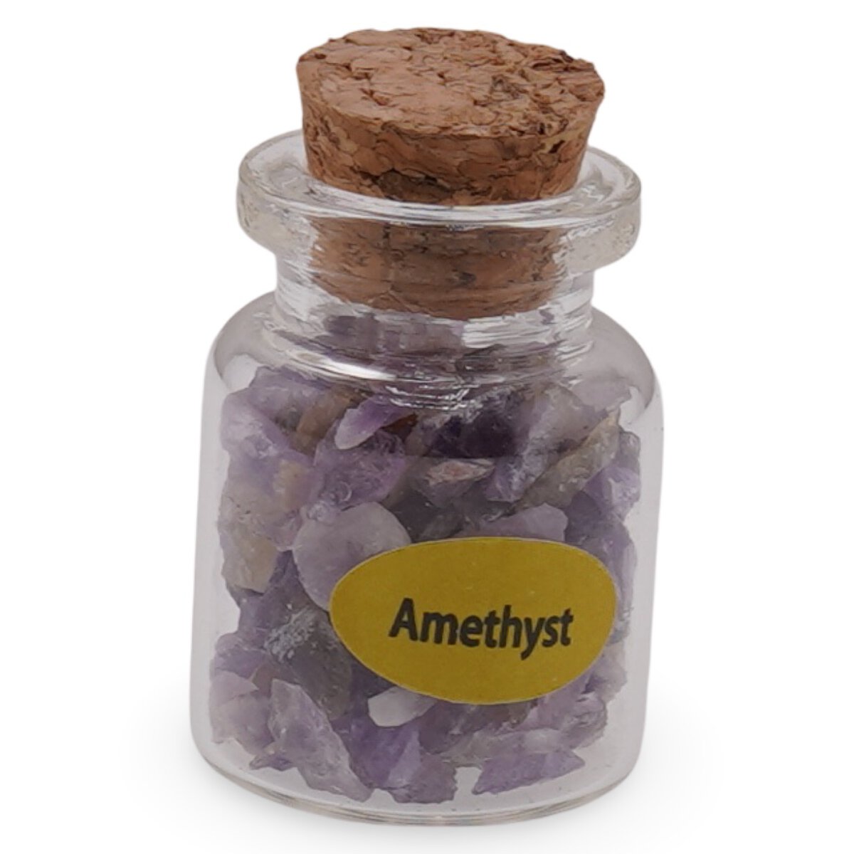 Sticla cu spartura Ametist, 3cm, este o sticluță cu cristale naturale de ametist în formă de chips, într-o nuanță mov plăcută și ușor de integrat în orice spațiu. Realizată din sticlă și umplută cu fragmente de cristal natural 100%, această piesă poate fi păstrată pe birou, pe noptieră, într-un colț de meditație sau într-un loc în care îți dorești un obiect discret, cu semnificație și aspect decorativ.