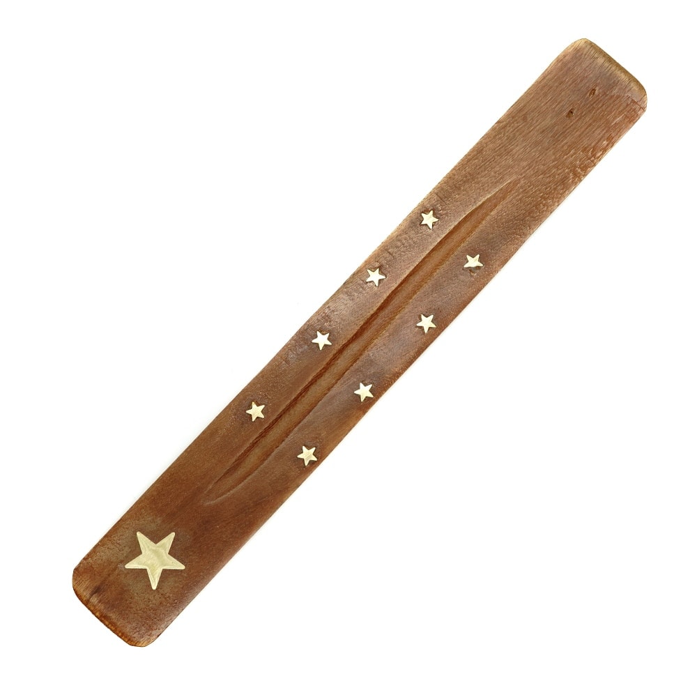 Suport din lemn pentru arderea betisoarelor parfumate decorat stelute din alama.