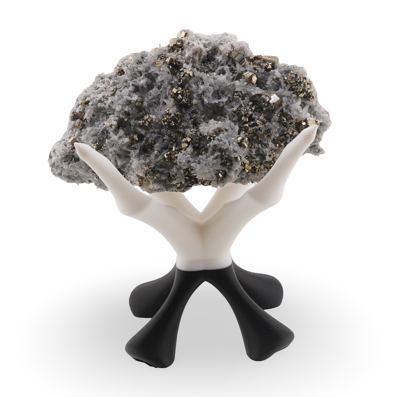 Poți alege varianta care se potrivește decorului tău: alb pentru un contrast luminos sau negru pentru o notă discretă și modernă. Acasă sau la birou, suportul pune în valoare o sferă din cristal, un glob din piatră naturală sau o piesă rotunjită, transformând-o într-un punct de interes bine definit. Designul cu patru brațe nu acoperă piesa, ci o ridică vizual, accentuând reflexiile și culoarea.