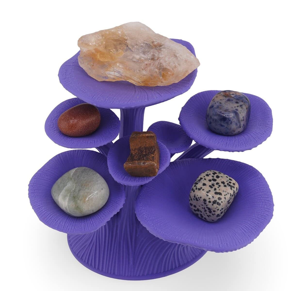 Suportul pentru cristale model ciupercă – mov poate deveni un punct de interes în decorul casei tale, mai ales dacă îți place să combini elemente moderne cu simboluri inspirate din natură. Culoarea mov se potrivește bine cu cristale transparente, albe, roz sau în tonuri închise, ajutându-te să creezi un mic altar personal sau un colțișor de meditație care să te reprezinte.