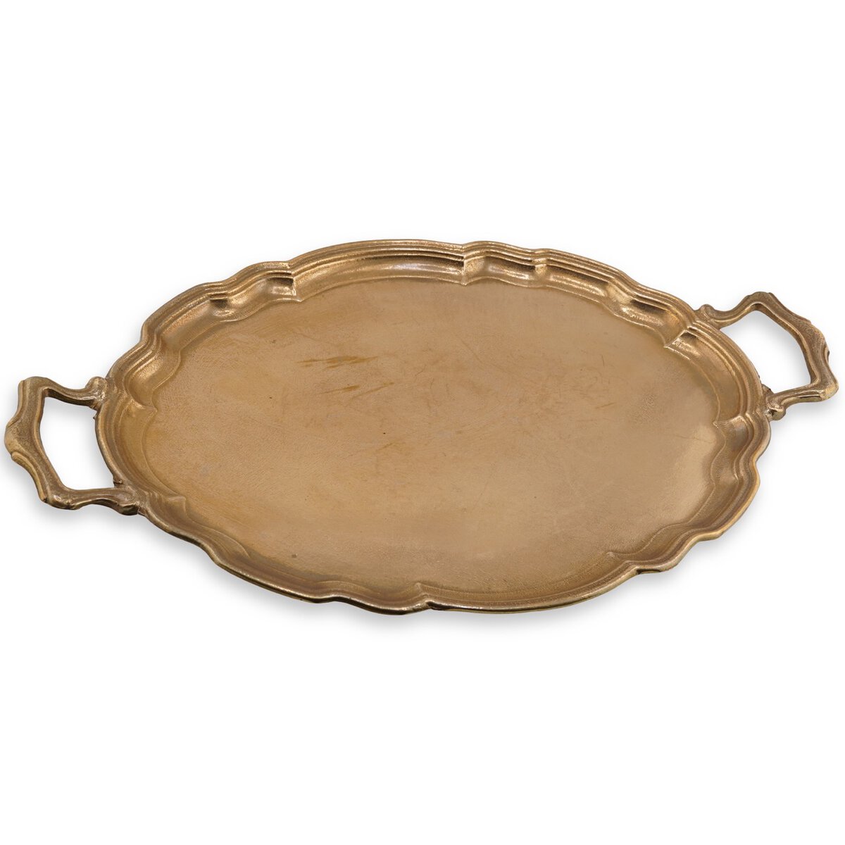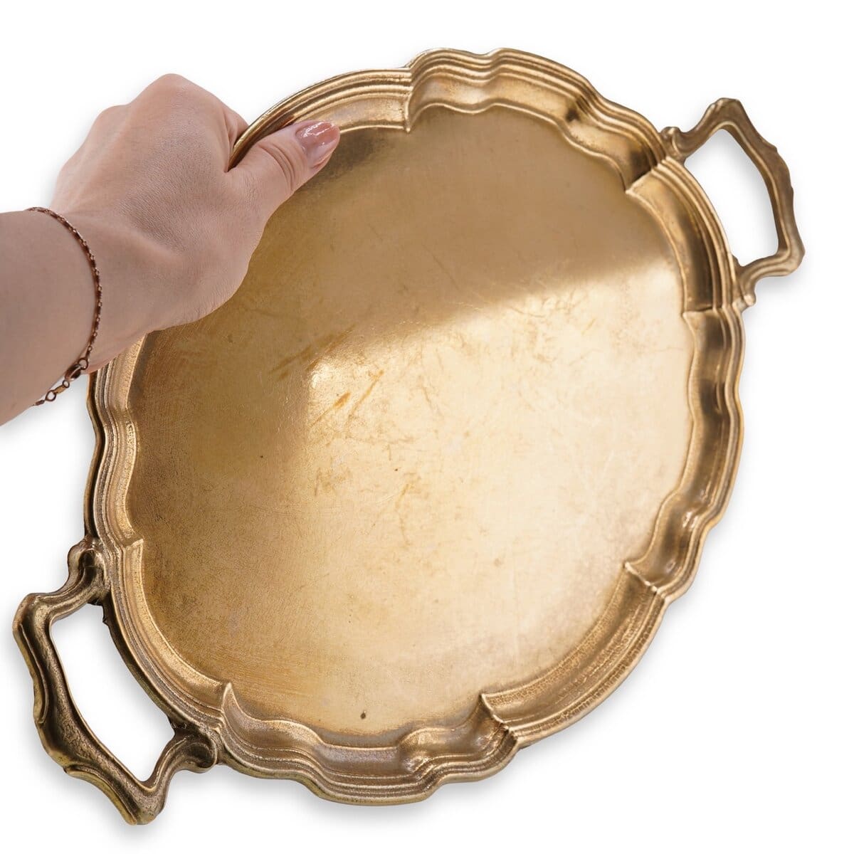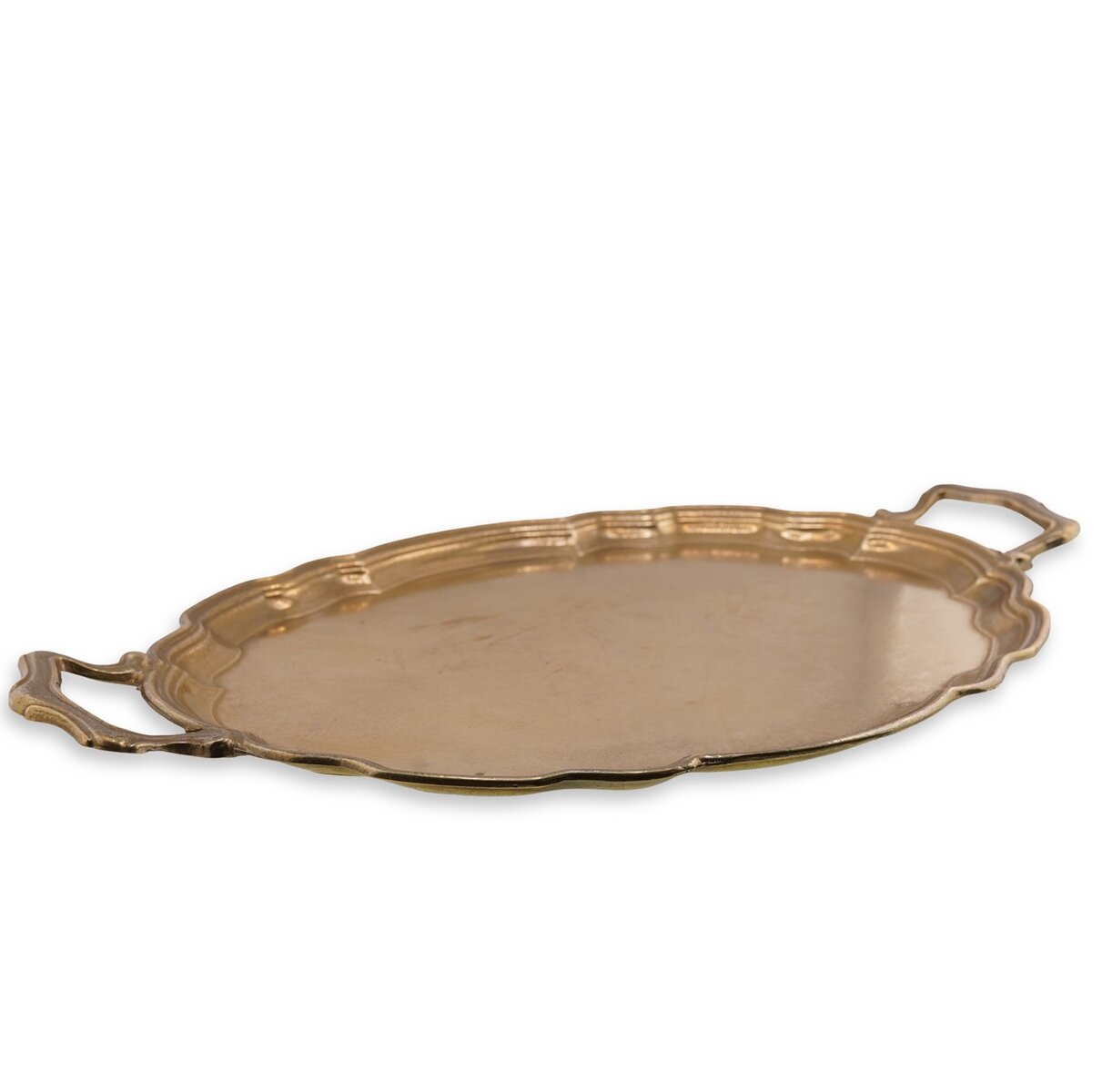Tava vintage din alamă cu două mânere laterale este o piesă decorativă care aduce un aer cald și elegant în orice încăpere. Realizată din alamă, un material cunoscut pentru rezistența și aspectul său rafinat, această tavă combină funcționalitatea cu farmecul detaliilor clasice. Suprafața sa fin finisată reflectă lumina într-un mod plăcut, iar nuanțele aurii ale alamei oferă o notă subtilă de rafinament, potrivită atât pentru decoruri moderne, cât și pentru cele cu influențe retro.