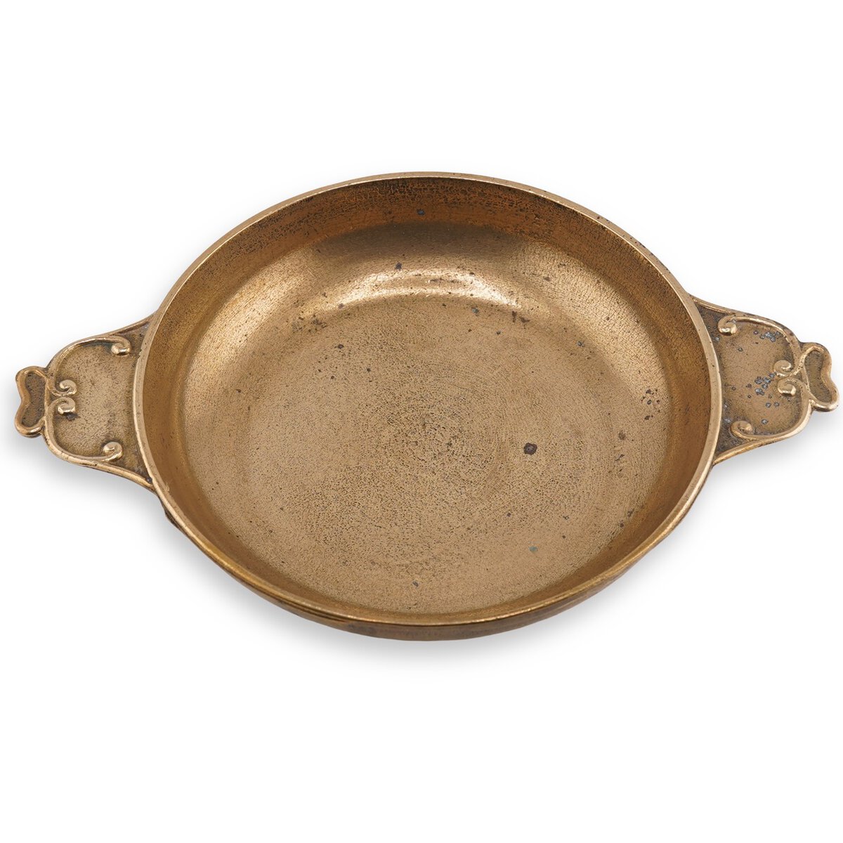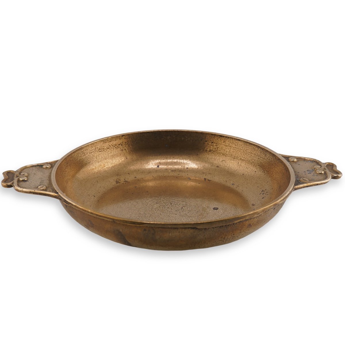 Tava vintage din alamă cu două mânere ornamentale, 19cm