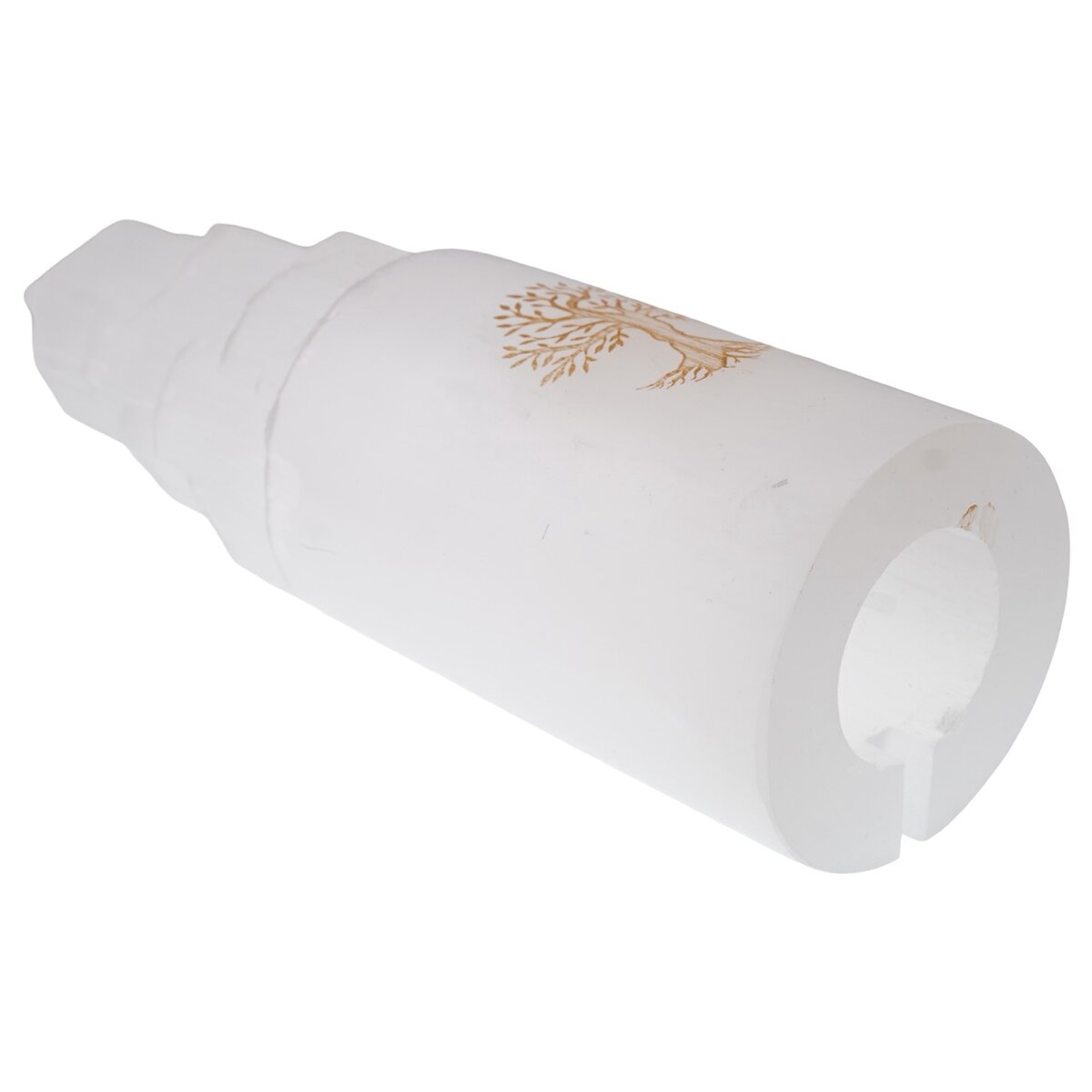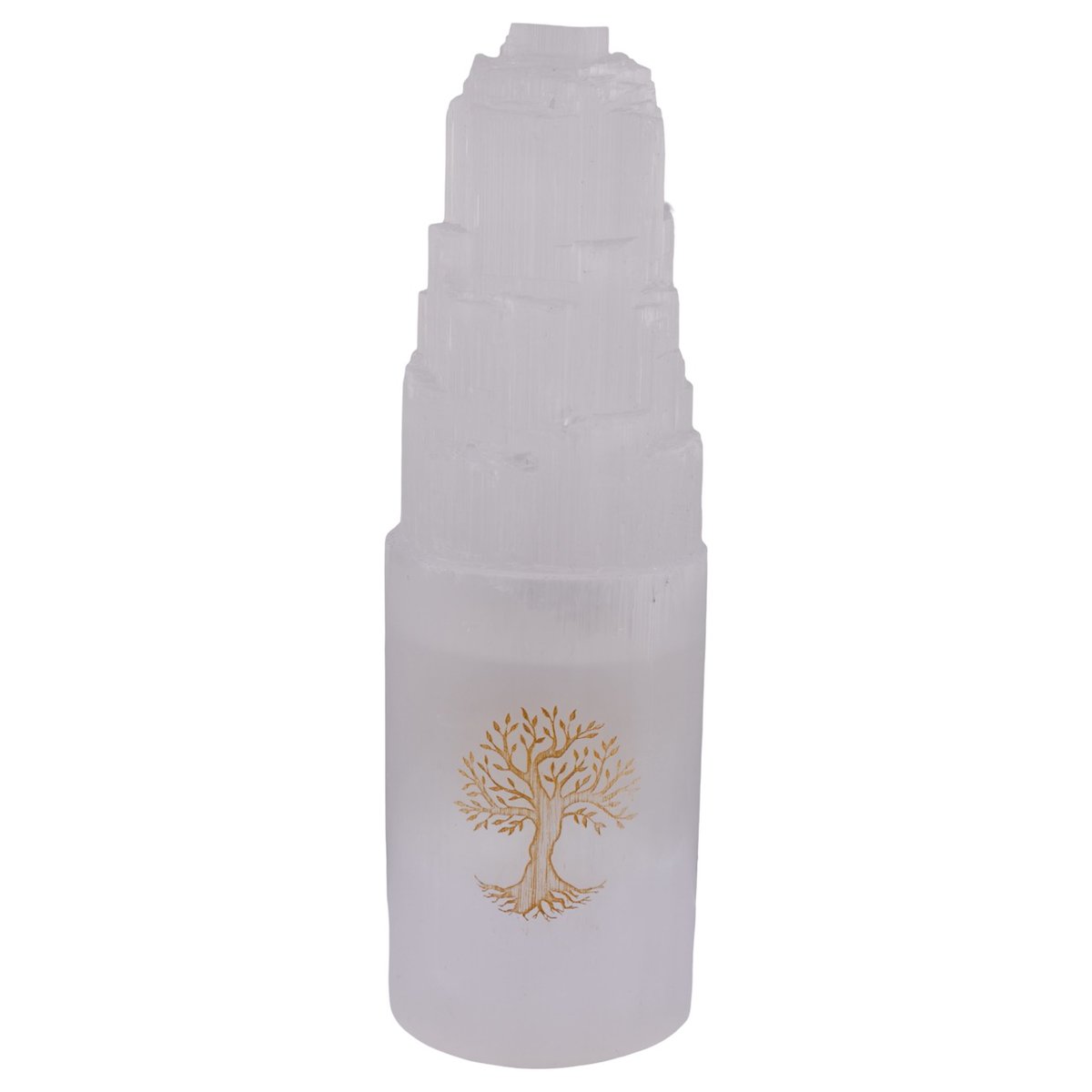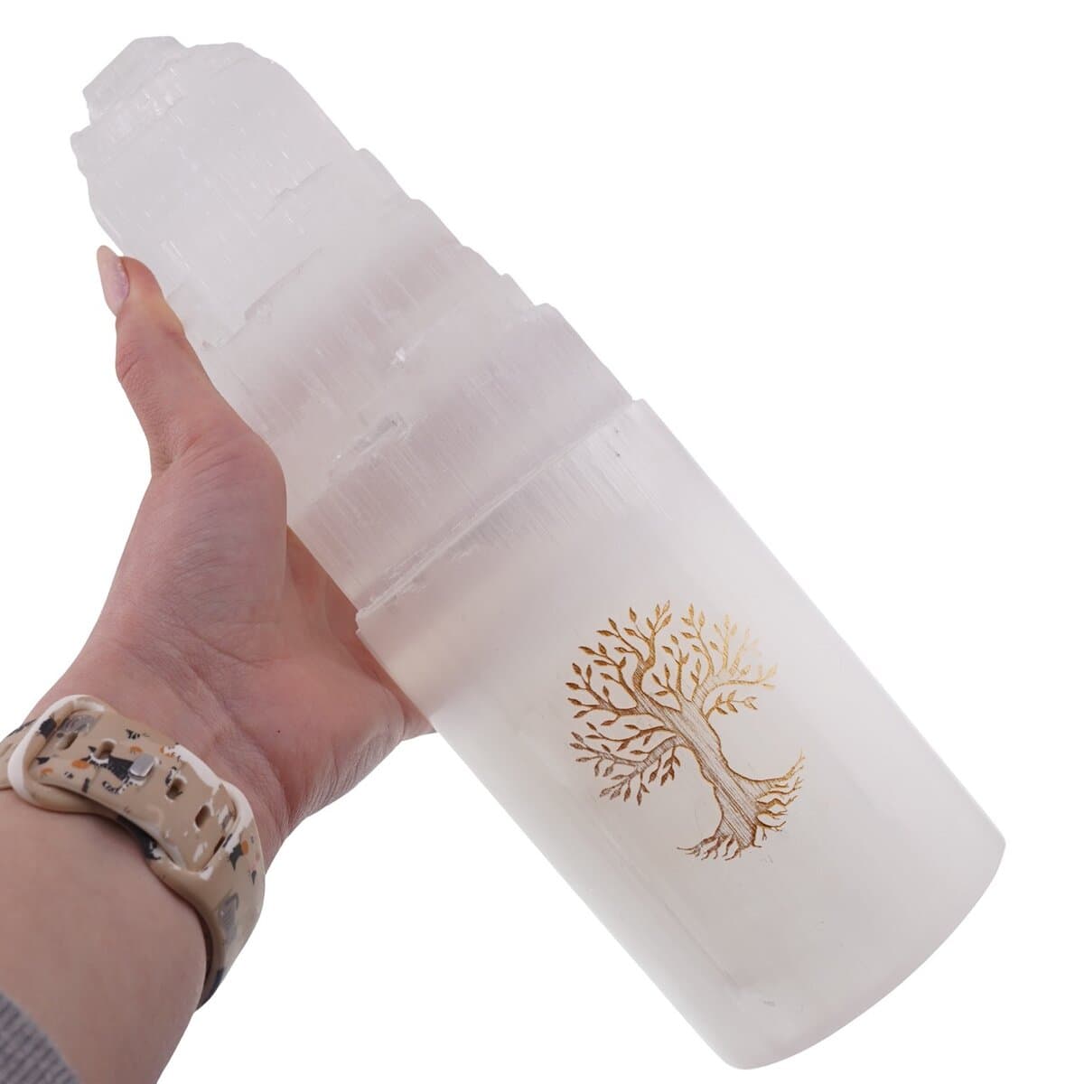 Turn / Lampa din Selenit gravat cu Pomul Vieții, 24-25 cm