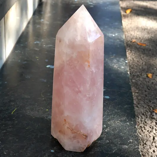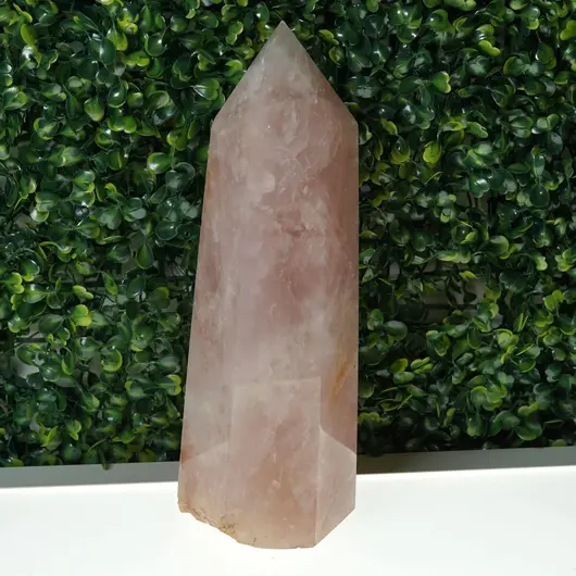 Indiferent dacă îl folosești ca element de decor sau ca sprijin în practici personale, obeliscul din cuart roz A5 aduce un plus de liniște și intenție clară în spațiul tău.