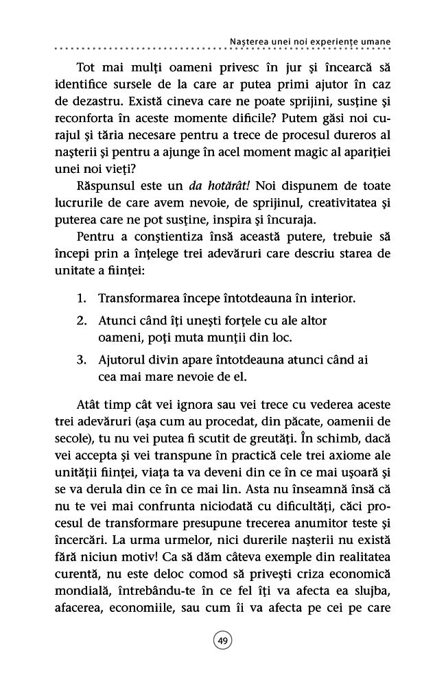 „Cartea Unitatea fiinţei îţi poate oferi o nouă perspectivă asupra vieţii, mai vastă, dar şi o senzaţie de împlinire şi de pace interioară. Pe măsură ce citeşti paginile acestei cărţi divine, permite înţelepciunii sale să îţi pătrundă în suflet şi să te îmbogăţească.”