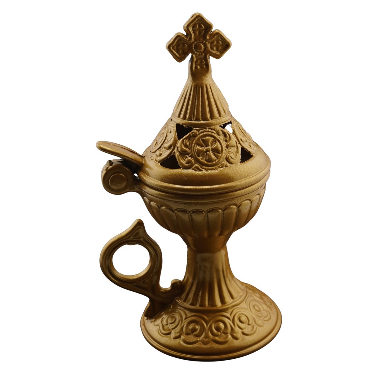Vas pentru ardere tamaie si ierburi, metal auriu, 15cm
