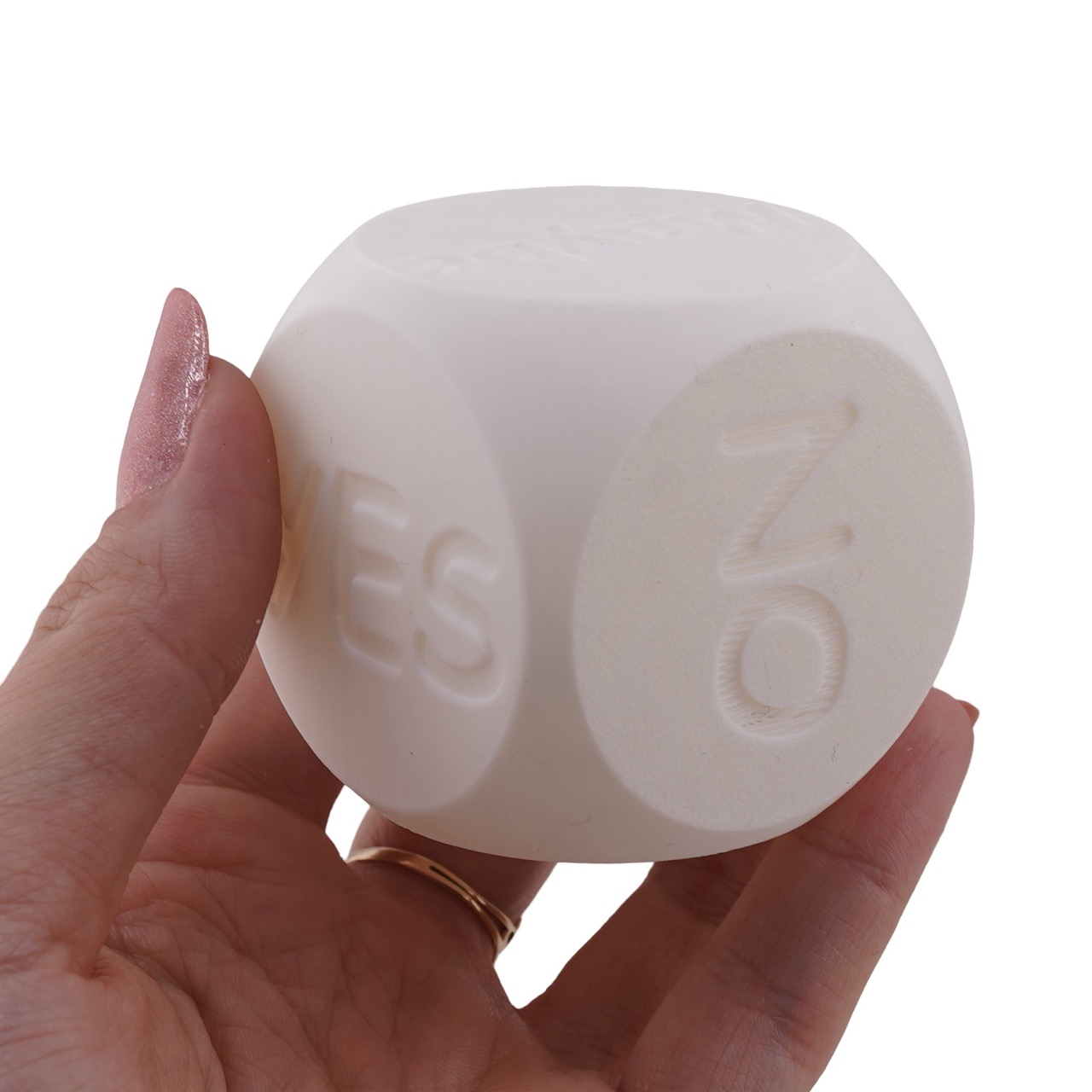 Zarul decizional Yes / No / Maybe se foloseste atunci cand ai nevoie de indrumare intr-o situatie incerta. Formulezi mental o intrebare, arunci zarul si primesti un raspuns simplu: Yes pentru actiune, No pentru oprire sau Maybe pentru amanare si reflectie